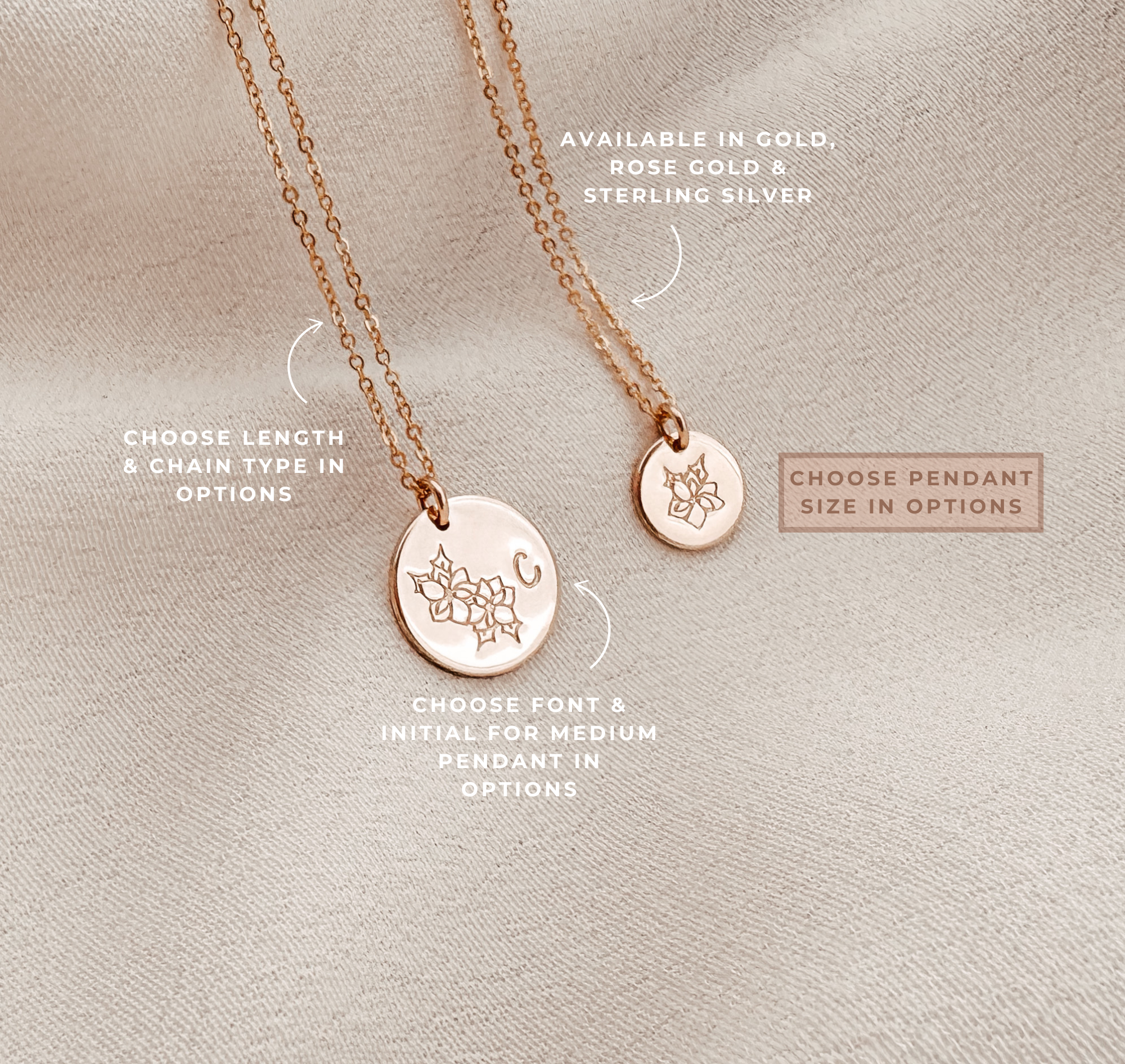 Poinsettia • Success • December Birth Flower • Choose Pendant Size
