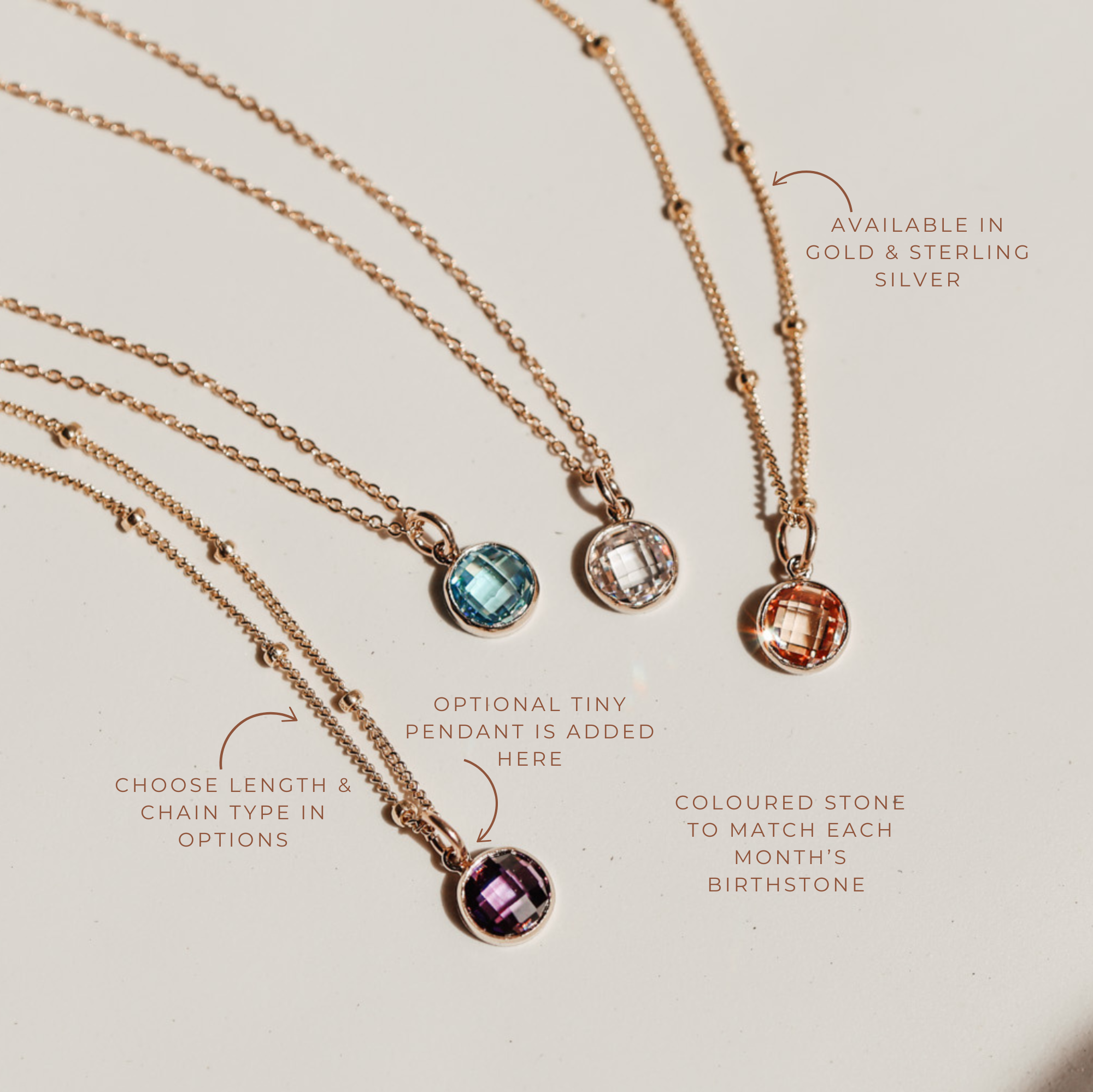 Every piece is handcrafted in our Brisbane studio using gold fill, sterling silver, and rose gold fill - materials chosen to last a lifetime without the fine-jewellery price tag. From personalised necklaces stamped with initials and names, to zodiac pendants, birth flower designs, and layering chains, each piece is made to order just for you.
