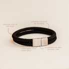 A classic style made for the treasured man in your life. This bracelet is made to be personalised on the stainless steel clasp with your selection of initials, symbols or a significant date. The double band is comprised of a sturdy woven nylon made to last.