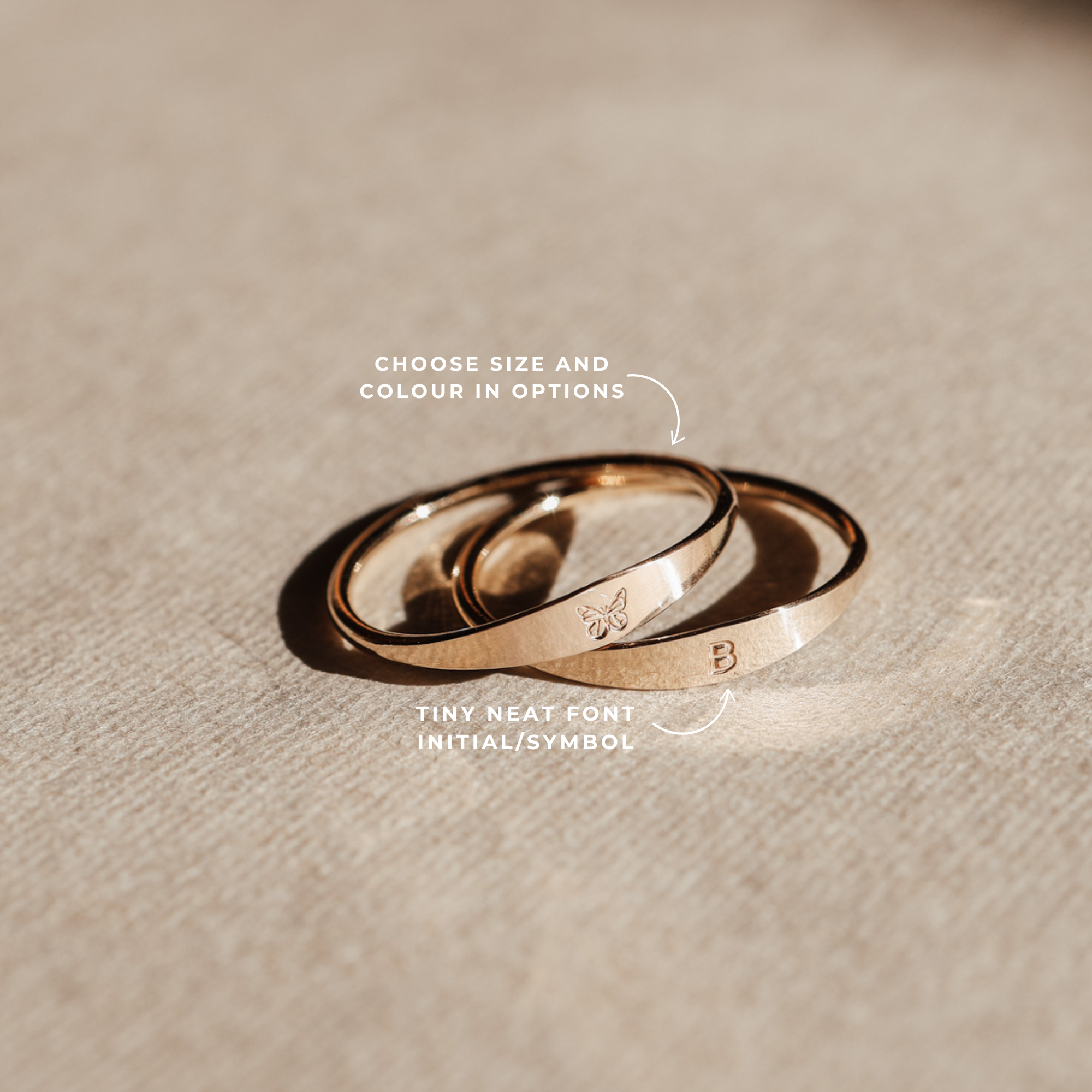 Our dainty signet ring is delicately hand-stamped with an initial or symbol that means everything to you. Whether it’s your own, theirs, or something sacred in between, this piece was made to hold your meaning close. Simple, timeless, and filled with quiet sentiment.