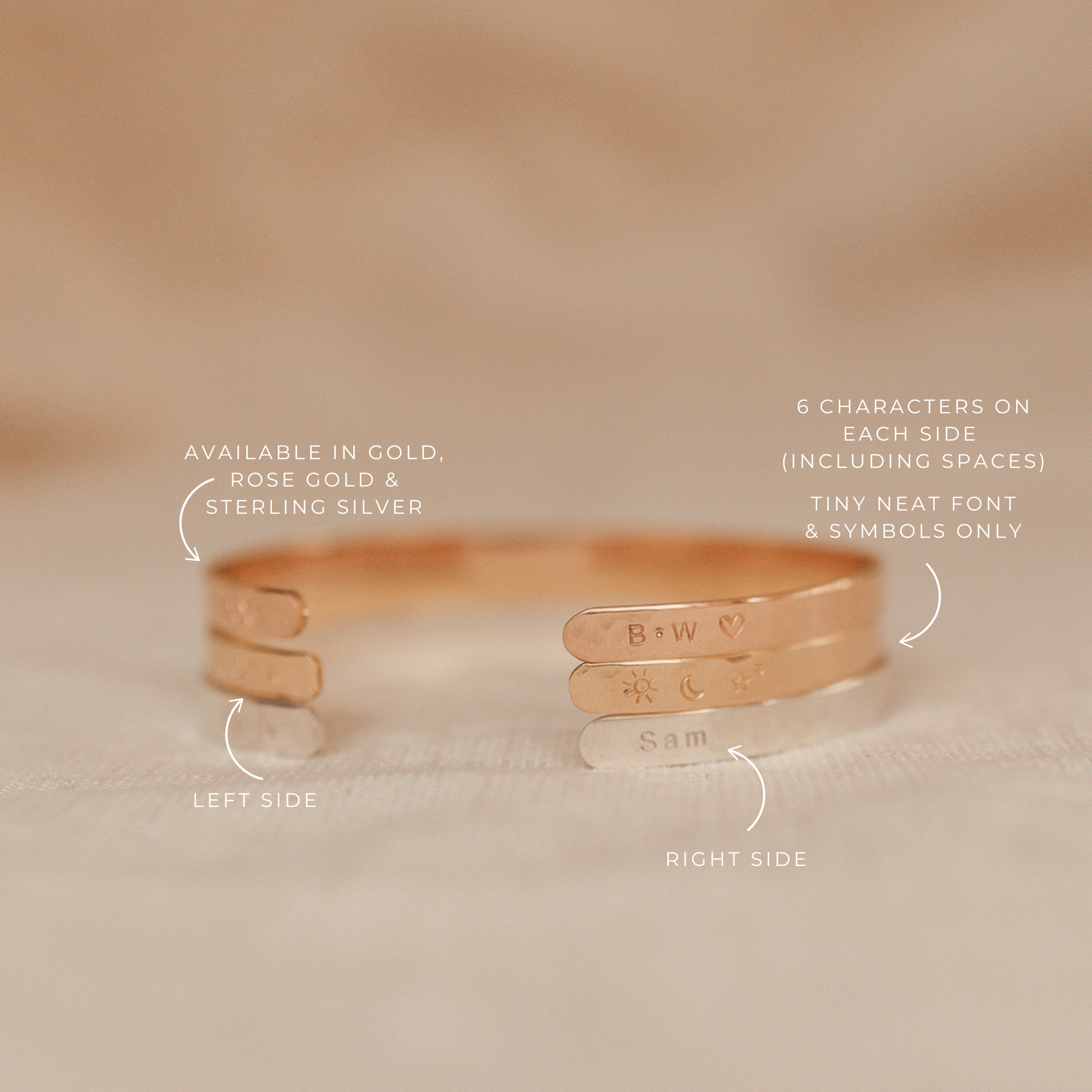• Cuff is made entirely of sterling silver, gold fill or rose gold fill.